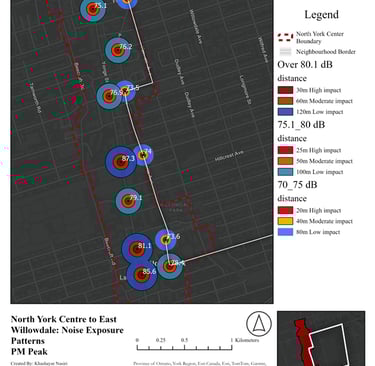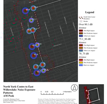 These limitations are acknowledged openly to present the results with transparency. The intention is not to provide exact noise boundaries, but to support early-stage analysis, spatial thinking, and potential policy conversations around comfort and environmental quality in the North York Centre area.